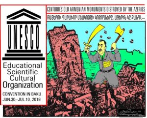 La 43e Conférence annuelle de l’UNESCO se tiendra à Baku du 30 juin au 10 juillet 2019. En d’autres termes, l’UNESCO entretient son patrimoine culturel et organise sa conférence en Azerbaïdjan. Non seulement elle se contredit, mais elle surveille également les archives qu’elle a conservées il y a des années, dans lesquelles elle était littéralement certifiée comme étant un soldat azéri. Les pierres de croisement arméniennes du Nakhitchevan ont été brisées par la provocation de l’État et le programme.