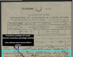 Bitlis Valisi için, Ermenilerin imhası vatanını selameti için kaçınılmazdır: İstabul’a yazdığı bir telde, “mevcudiyetleri bünye-i vatan… için daima muzırr görülen bu unsurun [Ermenilerin] kuvva-yı maddiye ve maneviyesiyle imkân mertebesinde imhası selamet-i vataniye icabâtına göredir,” demektedir.