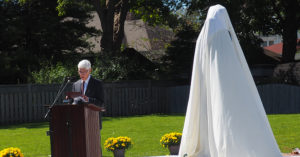 At the conclusion of remarks from guest speakers and a song from the Shantymen during the Sept. 14 event, there was a dramatic performance by Armenian contemporary performance dancers, after which children unveiled the statue.