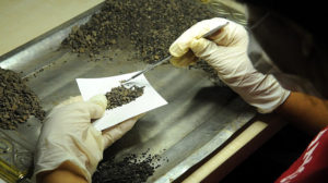 Après que les grains de blé aient été séparés du sol par des experts, ils seront envoyés au laboratoire pour examen.