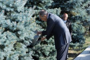 «Արմենփրես»-ի հաղորդմամբ` Լաւրով ծաղկեպսակ դրած է եւ յարգանքի տուրք մատուցած Հայոց Ցեղասպանութեան զոհերու յիշատակին, ապա ջրած Յիշողութեան պուրակին մէջ 12 տարի առաջ իր տնկած եղեւնին: