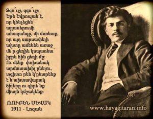 ՆԱԶԱՐԷԹ ՊԷՐՊԷՐԵԱՆ – ՅՈՒՇԱՏԵՏՐ – Ռուբէն Սեւակ (Չիլինկիրեան, 1885-1915) Արդարութեան եւ Ցասումի անաւարտ երգը