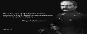 – Ամէն օր ձեր գլուխը բարձին դնելէ եւ քնանալէ առաջ, յիշեցէք, թէ այդ օրը ի՛նչ էք ըրած ձեր ազգին համար: