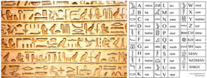1. Եգիպտական հին արձանագրութիւն մը, 2. Անգլերէնի վերծանումի բանալի մը: