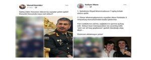 Միեւնույն ժամանակ, սոցցանցերի ադրբեջանական սեգմենտը հրապարակում է սպանված զինվորականները լուսանկարները եւ հայհոյանքներ շռայլում պաշտպանության նախարար Զաքիր Հասանովի եւ արտաքին գործերի նախարար Էլմար Մամեդյարովի հասցեին։ Օգտատերերից մեկը ձախորդ գեներալին անվանել է «կալոշ»։ ԱԳ նախարարին էլ հիշեցնում են Նյու Յորքում նրա որդու 5 միլիոն դոլարանոց շքեղ բնակարանի մասին։
