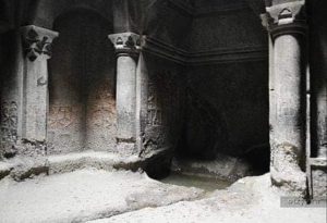 «Արագածի Աղց գյուղի մոտ էլ՝ լեռան մեջ, փորված է մի խոր տեղ՝ մատուռի ձևով՝ խորանով հանդերձ, որի մեջ կանգնեցված է մի փոքրիկ սյուն՝ երկու կողմերում կիսաբոլոր խորշեր, մարդկանց ու կենդանիների քանդակապատկերներ։
