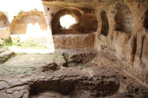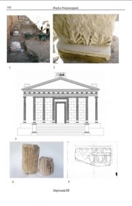 Հնավայրի տարածքում, ի թիվս համալիրի՝ զանազան նշանակության բազմաթիվ շինությունների (գանձարանի, հասարակական բաղնիքի մնացորդների), հայտնաբերվել են տաճարին պատկանող մշակված, քանդակազարդ քարաբեկորներ, սյուների հատվածներ, արխիտրավի, խոյակի մի բեկոր, որոնք, ենթադրաբար, երբեմնի տաճարի փլատակներից են, նաև՝ ն.թ. 1-ին դարին պատկանող սկուտեղներ, պնակների բեկորներ…