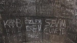 Պատմական այս քաղաքին մէջ յայտնուած որոշ զբօսաշրջիկներ աւելի հանճարեղ ոչինչ գտած են, քան եկեղեցիներու, ամրոցներու ու այլ շինութիւններու` կանգուն մնացած պատերուն սեփական անունները, այցելութեան տարեթիւերը, ամուսինին կամ սիրեցեալին ուղղուած սիրոյ խոստովանութիւնները կաւիճով ու ներկերով գրելը կամ սուր գործիքով փորագրելը: