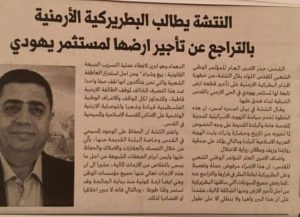 Արաբական մամուլին որ օր չկայ որ չանդրադառնայ հայոց պատրիարքութիւն կոչուածի խայտառակ գործարքին: