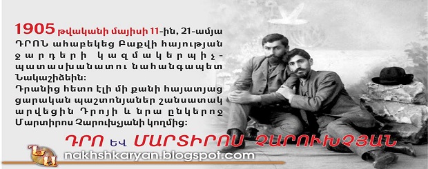 1905 թվականի մայիսի 11-ին, 110 տարի առաջ, Անդրկովկասի նավթային մայրաքաղաք Բաքվի կենտրոնական հրապարակներից Պարապետի վրա, 21 ամյա մի հայ հեղափոխական ռումբի մի հարվածով ահաբեկեց նահանգապետ իշխան Նակաշիձեին: