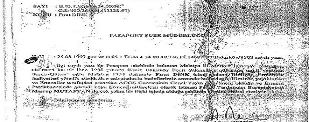 «Ակօս»-ի հիմնադիր եւ խմբագիր Հրանդ Տինքին անցագիր ստանալու դիմումները մերժուած էին մօտաւորապէս 25 տարի շարունակ: 1997-էն մնացած եւ «գաղտնի» նշանակուած փաստաթուղթի մը մէջ, բացի Հրանդ Տինքէն, մեկնաբանութիւններ կան նաեւ այդ օրերու Պոլսոյ պատրիարքական փոխանորդ Մեսրոպ արք. Մութաֆեանի հասցէին: