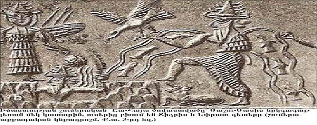 Լեզվական ընդհանրություններից բացի՝ բացահայտվում են նաև այլ առնչություններ: Օրինակ՝ Աստված, որի ուսերից երկու գետ է բխում: (Արևելյան կիսագնդում բոլորը գիտեն՝ այս գետերը Տիգրիսն ու Եփրատն են, որոնց ակունքում Հայաստանն է, իսկ eutyun.org կայքից վերցված այս նկարում Էա-Հայա շումերական ծովաստվածը կանգնած է նաև երկգագաթ Մաշու լեռան վրա, որն անշուշտ Մասիսն է): Այնտեղ կան Արարատի նման լեռ և Մհերի դուռը հիշեցնող կառույց: Վիրակոչա անունն էլ, Մերի Սարգսյանի կարծիքով, կարող է ի վերուստ կոչված իմաստն ունենալ: